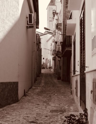 A narrow street in Contessa Entellina, Sicily. No doubt in Chapter 5 of “Angel of Alta Langa,” Francesco could hear his mamma crying as he left home for Piemonte.