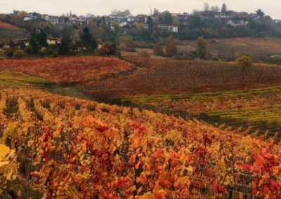 Autumn vineyard foliage below Villa Giulia atop Monte Aribaldo in Treiso (Barbaresco denomination).
